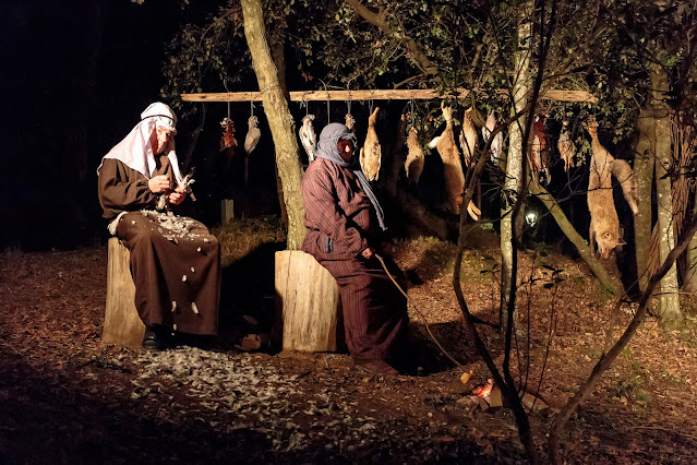 На небольшой площади перед церковью постепенно собралась приличная толпа и в 19 часов представление началось - сначала публике представили несколько постановочных номеров, после чего закралось подозрение, что мы увидим всего лишь обычный спектакль в одной и той же декорации. Однако, после пришествия императорской гвардии и зачтения указа императора Августа о всеобщей переписи населения, где-то слева в темноте открылись двери и народ потянулся вереницей по размеченному маршруту, вдоль которого можно было лицезреть различные сценки из Библии и жизни рядовых каталонских жителей Назарета и Вифлеема тех времен.
